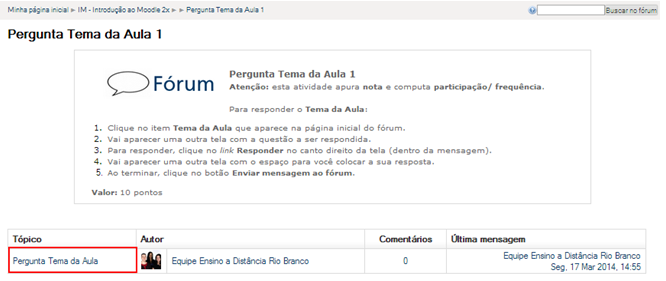 Na página seguinte clique no Tópico que deseja responder.