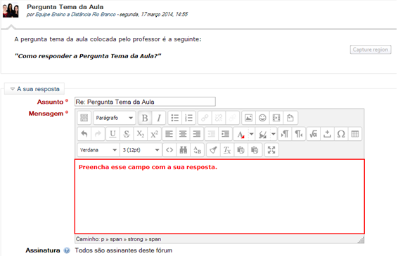 Após redigir a resposta no campo indicado, clique em Enviar mensagem ao fórum no final da página.