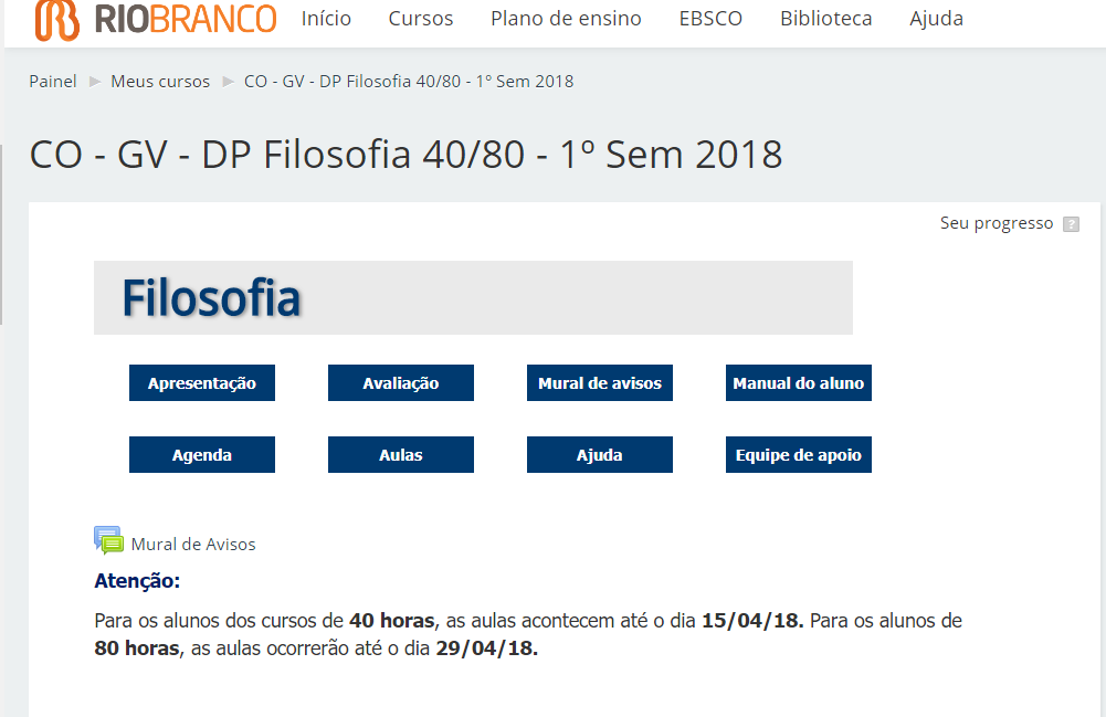 Clicando em uma das disciplinas, você será direcionado ao ambiente da aula.